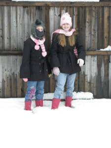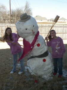 Love your snow man! How did you get it so big with so little snow? The girls look thrilled!