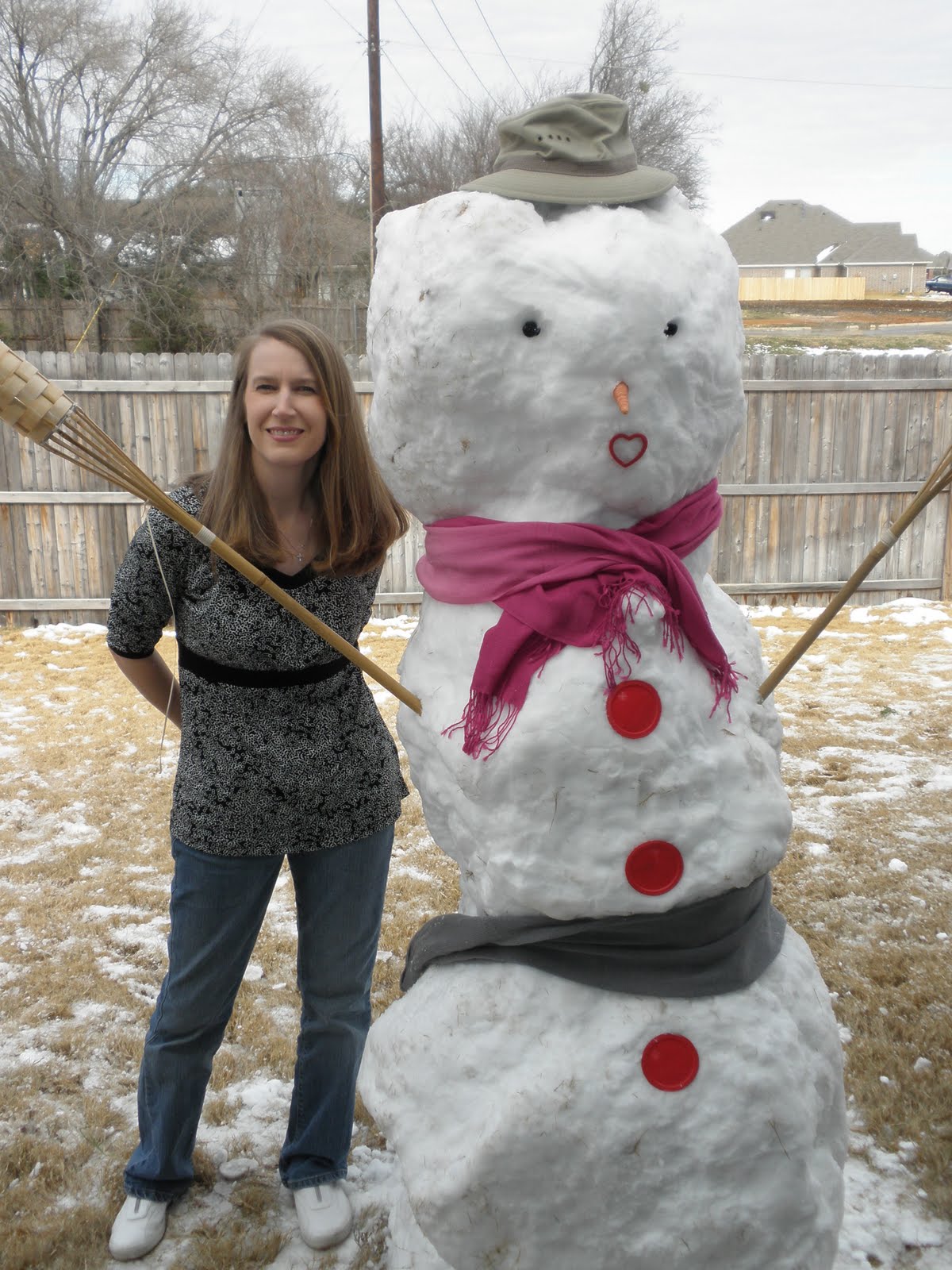 Love your snow man! How did you get it so big with so little snow? The girls look thrilled!