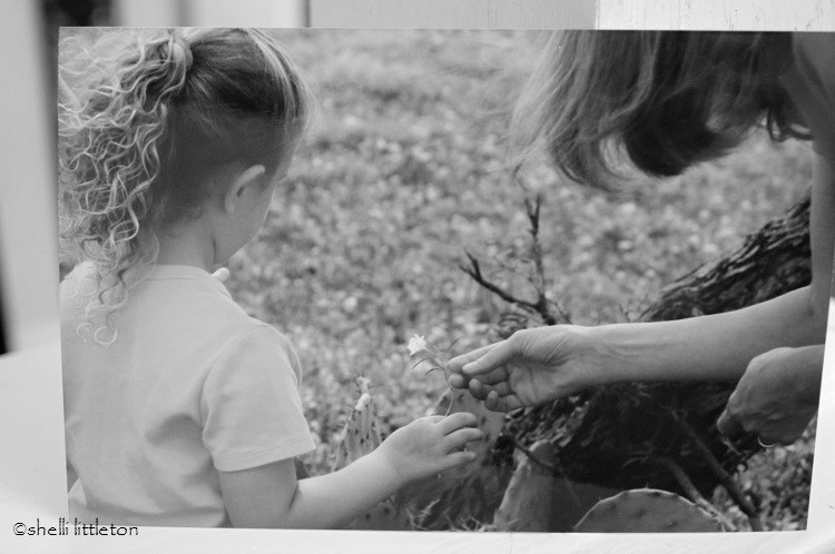 Her sweet knees lowered and capped the ground. “Mama, look. There’s a flower.”