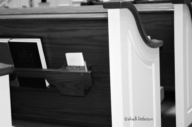 Shelli, this is beautiful. I grew up in a church with pews, and until I was about 40, saw in pews. Ohhh, the memories this brought back. Yes, yes we always sat in the same area. I remember years ago, we were supposed to “Pack a pew” meaning invite enough people to fill your pew. My mother always made us spread out to look like more people than we were–which was six. 🙂