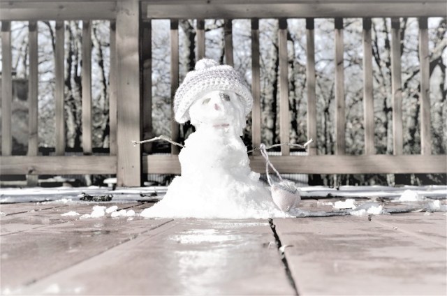 | My snow-girl. Her New Year’s resolutions are to become well-rounded and to get in shape. |