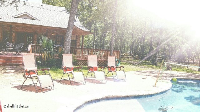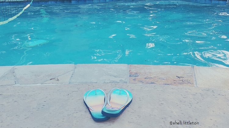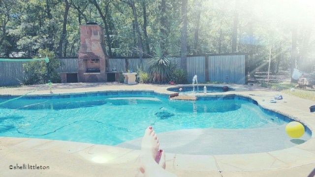 Standing at the glass back door, I overlook the shimmering water in my swimming pool. Perfection. I can’t believe I have that in my backyard. I’m so pulled to open that door, step outside. Oh, how I’ve longed to take one of those pictures of my feet propped up at the pool on a hot summer day. But one has to be outside, in the sun, by the pool, to do that.