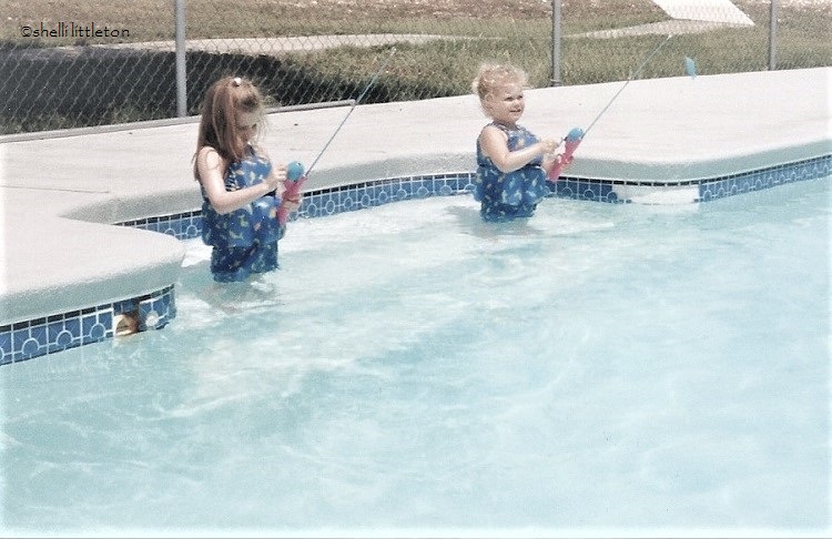 | fishing in the swimming pool … caught a plastic fish each and every time |
