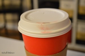 “I’m sorry,” I say. “I didn’t mean to get my lipstick on your cup.”
