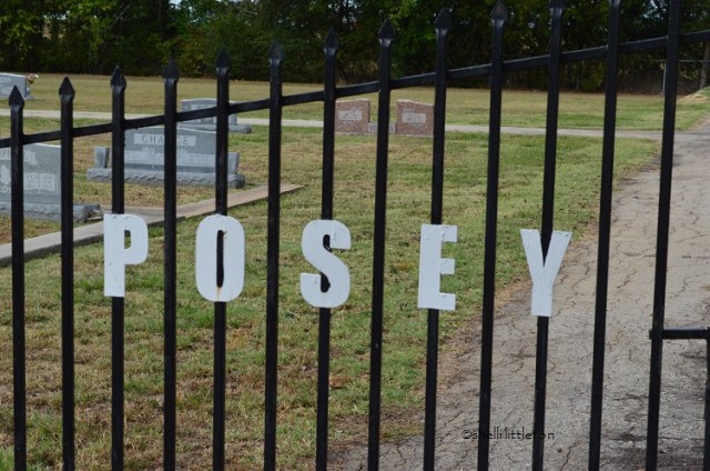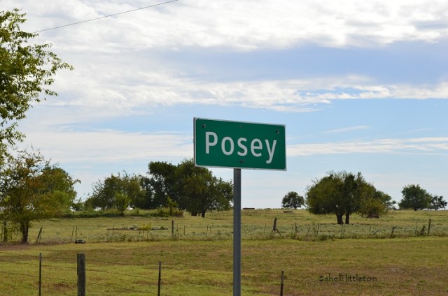 I gasp. A city limit sign announces “Posey” … Posey, Texas. My heart claps. That’s part of my itty-bitty character’s nickname. I missed that detail on Google Earth. Wow. Unbelievable.